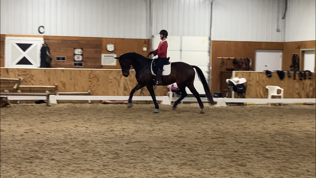 *SOLD* Such a ladies horse! Standing at 16 hands, Amira is discovering her newfound life in the Dressage arena after being raised in the Hunter world and is a big fan of all things Dressage. She is very intelligent and quick to pick up on new concepts and appreciates a rider willing to explain their expectations. Easy in the contact and currently solid Training level and schooling First level with leg yields, lengthening and has started counter canter and shoulder in. She has an auto change from her hunter world, but will continue to develop the foundation levels of dressage before reintroducing them. She is quiet in the stall, happy in turnout and easy to handle. A very easy keeper and an overall pleasure to have in the barn. Her first day working in the open field was confident and ladylike. Price will increase with training.